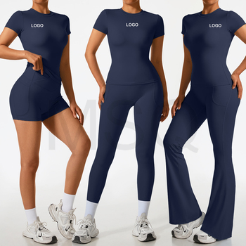 Conjuntos de ropa de entrenamiento de etiqueta privada, ropa de gimnasio para mujer, Top deportivo de manga larga, mallas elásticas altas, pantalones cortos, conjuntos de Yoga